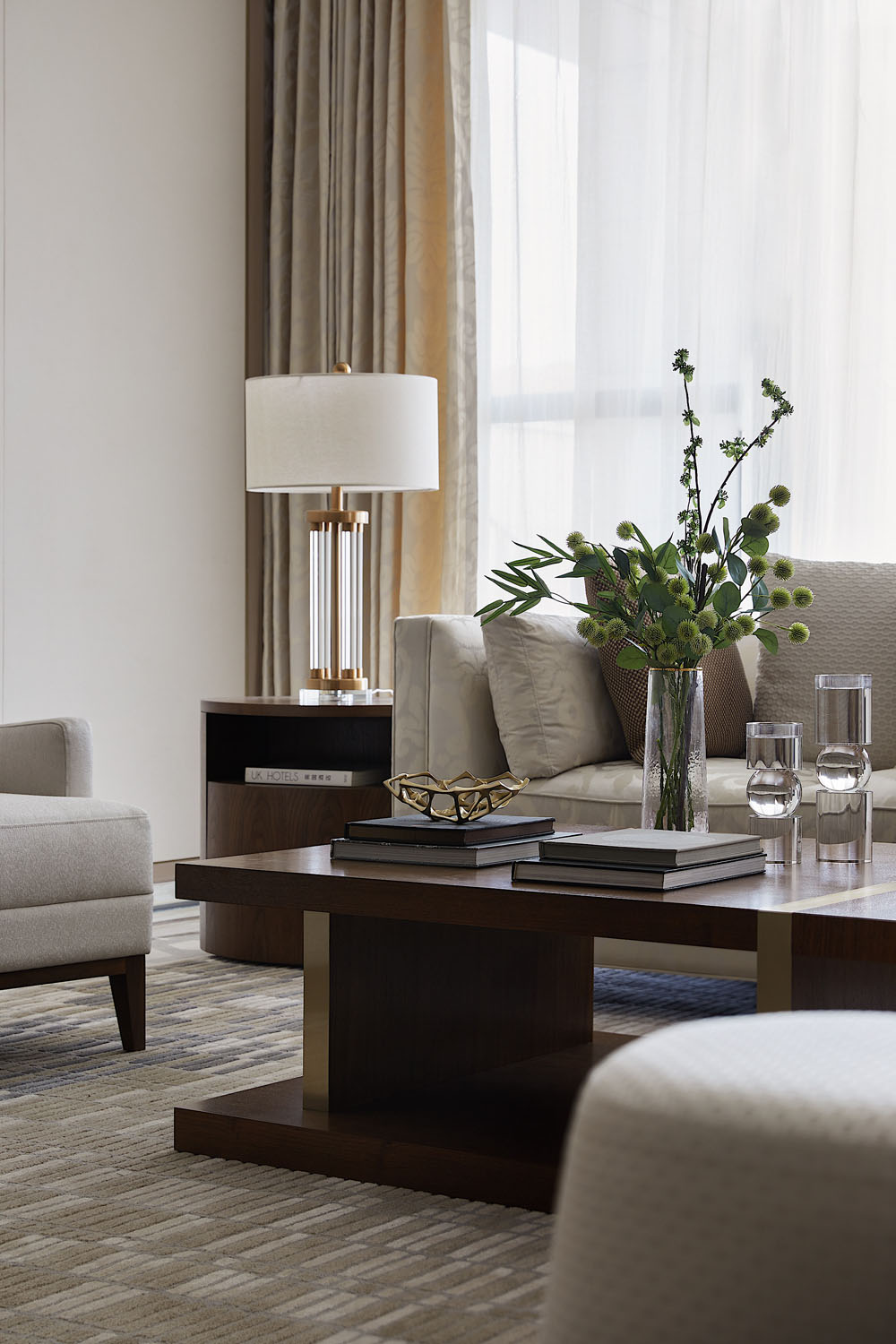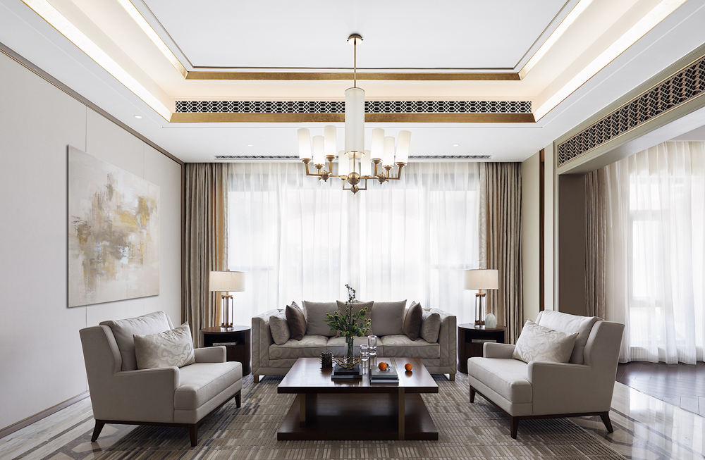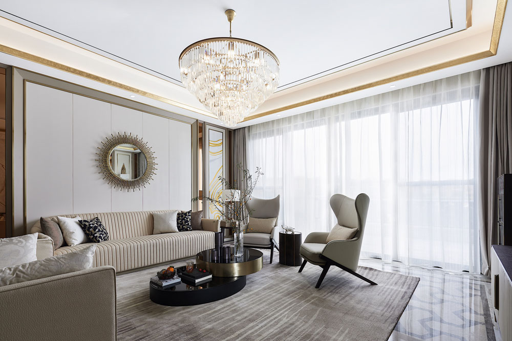 設計師鄭鴻以居者家族的凝聚力為起點,結合地域文化抒寫歸家的情懷。在輕奢美學與自然風物的融合滲透中,傳遞著充滿雅趣而恒久的審美,讓空間充滿安適舒愜的韻致。