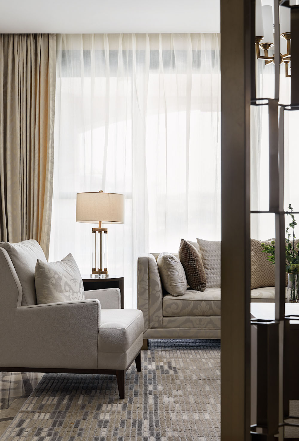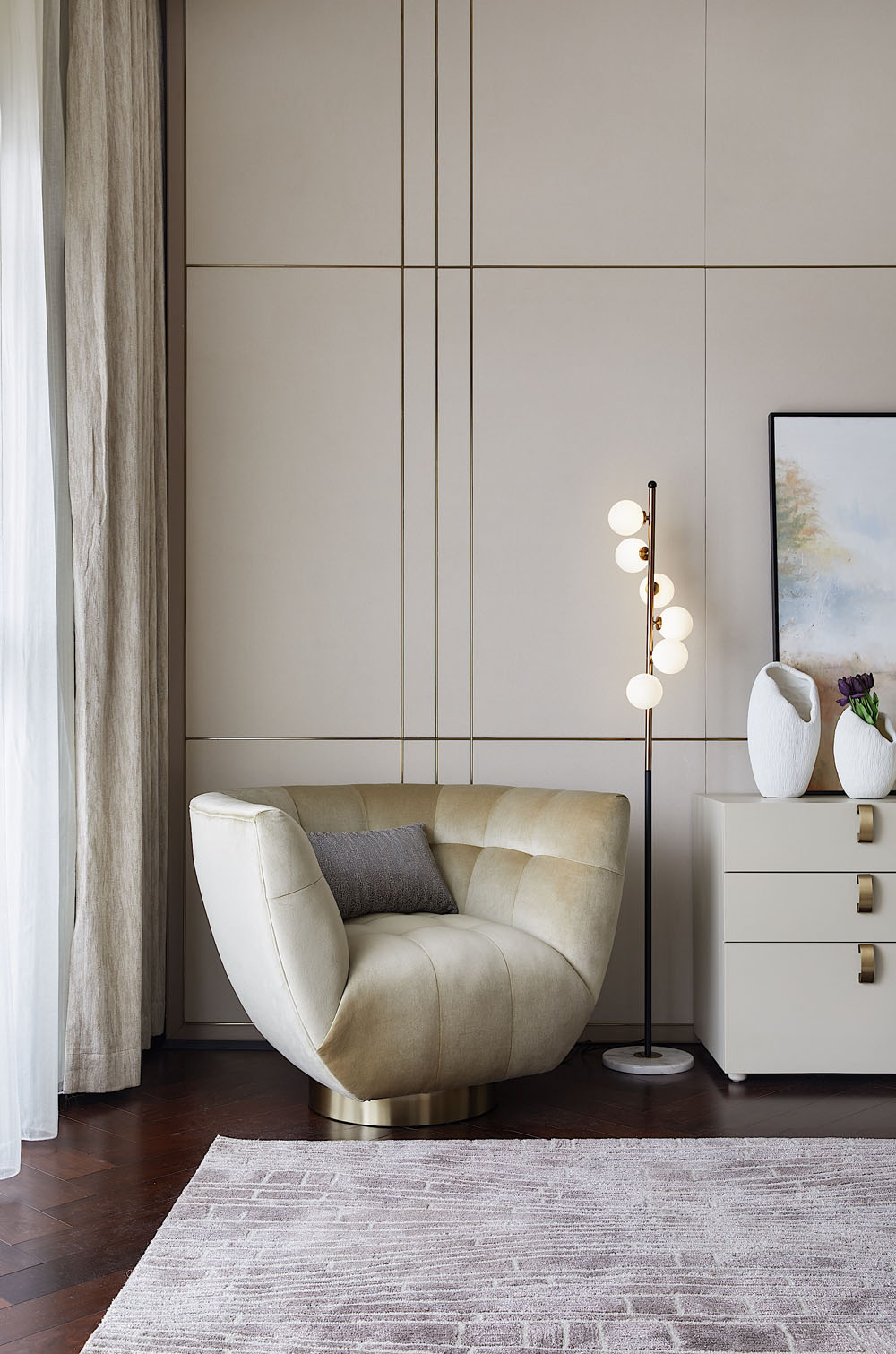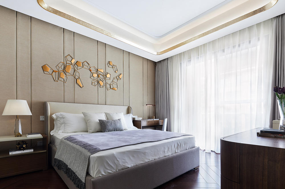 生活是精神意識的再現,所謂的奢華,是拋開表象之后所獲得精神上的愉悅與清寧。米色的溫柔與金屬的質感打造出素雅精致的藝境。清風徐來,透過紗簾悄悄融入親朋間的溫馨家常。想象需要被預留空間,讓每一天都充滿未知的驚喜。