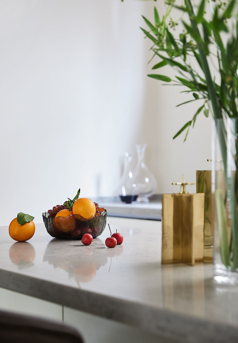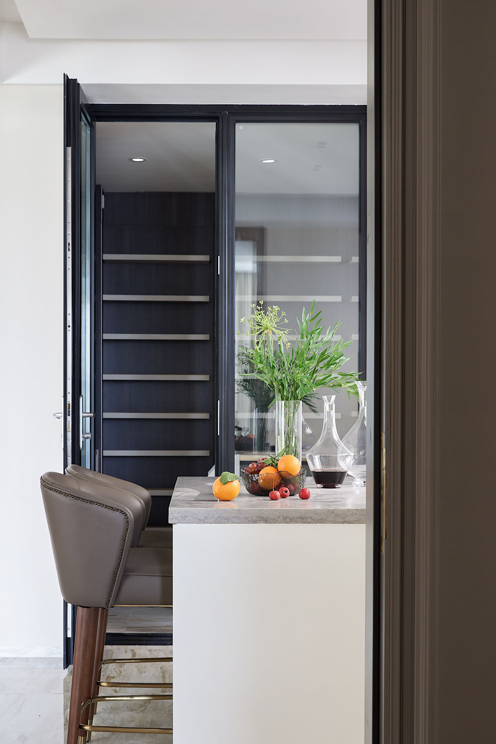日光通過百葉窗映照在西廚島臺上,順應季節時令,品嘗最鮮甜的果味,亦或倚靠吧臺,來一曲舒緩慵懶的藍調,和愛人小酌片刻,都是精致的存在。