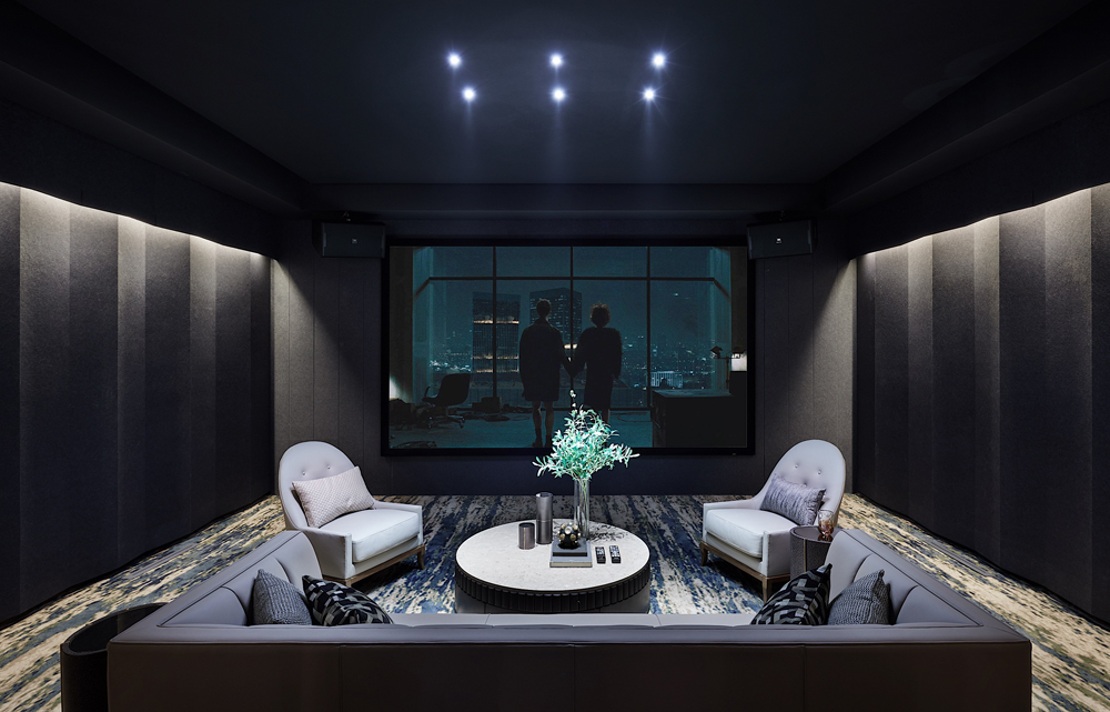 負一層的影音室營構了一個家人互動的休閑場景,智能化影音設備在有限的空間里提供了無盡的想象,通過豐富多彩的感官體驗令情緒得到放松。