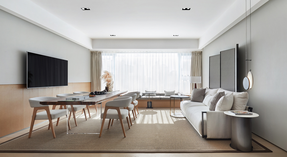 设计师徐静充分考虑了业主行业沙龙、闺蜜下午茶、料理烘焙等个性化需求,织物与木质的完美组合,自然而质朴,在不断变幻的光线中,设计成就了迷人的色彩美与律动美。