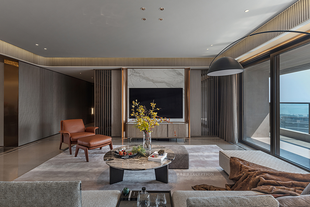 基于业主的气质与品位,以现代精奢风定调空间的气场,通过强化自然木作、山水石纹、圆的意象,不经意的东方元素,为空间引入一份清雅与别致。