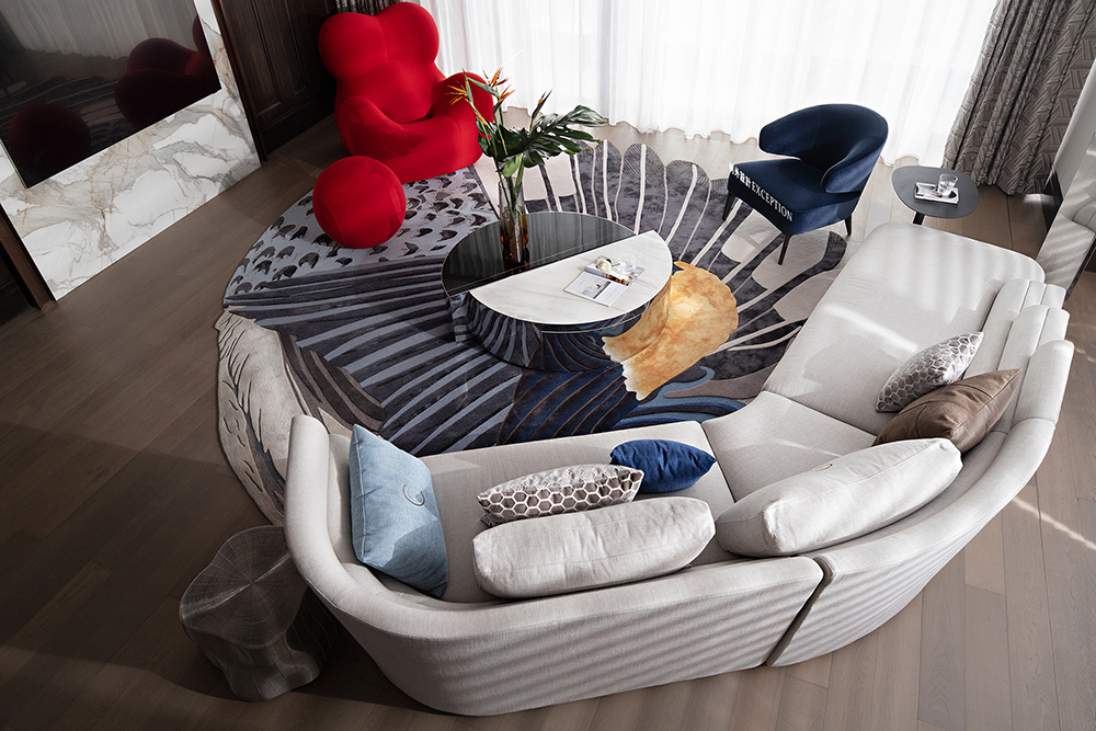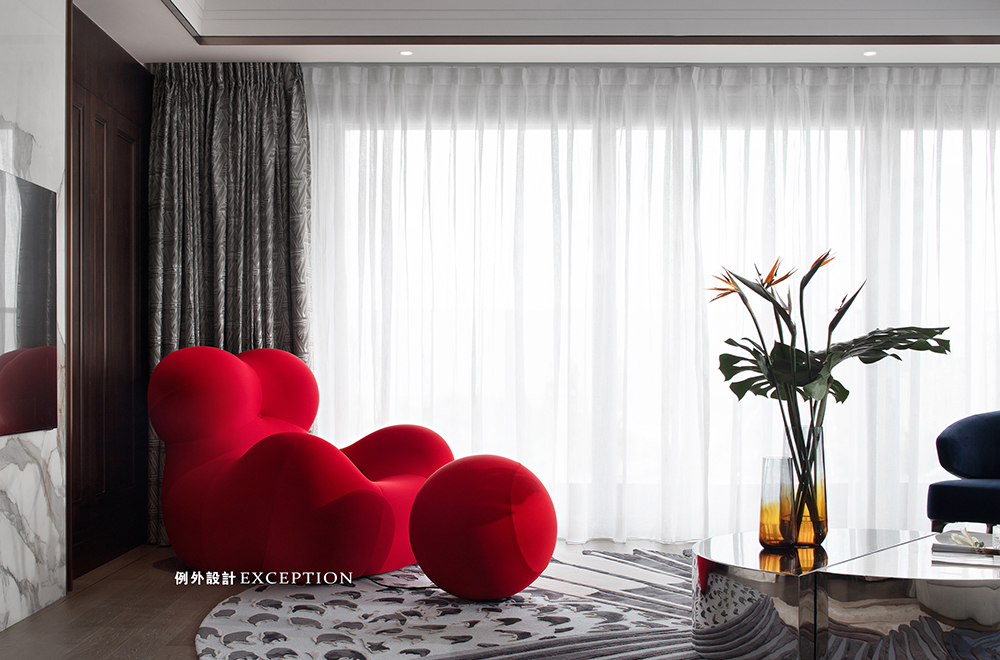 一个待得住的家,每一个角落都有着让人能够放松的理由。妈妈的怀抱以最柔软的姿态散发着母亲般的温暖与安全感,红色热情,如同生活的热闹斑斓,那是一种可感知的暖意。蓝色单椅优雅绅士,红蓝撞色融入时尚的审美趣味,家人小憩、阅读,静静陪伴也是一种无声的默契。