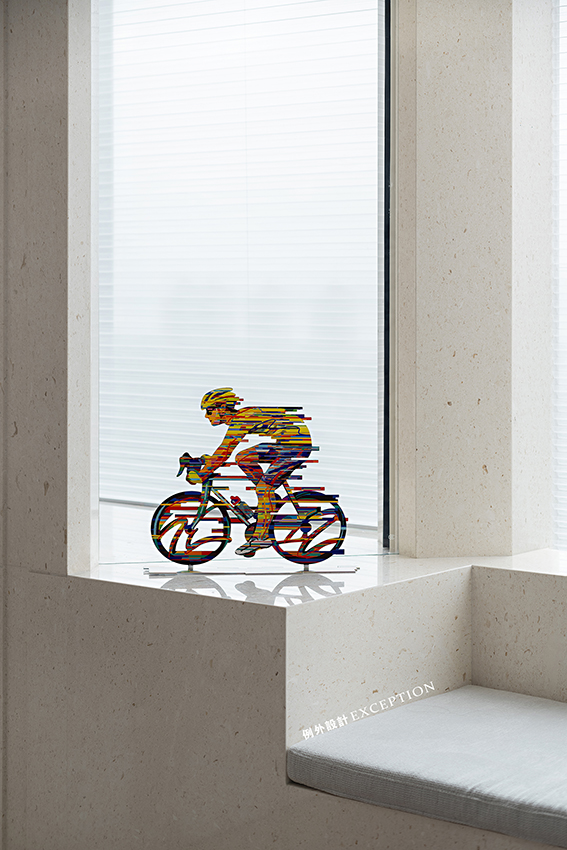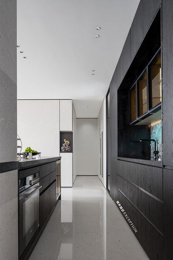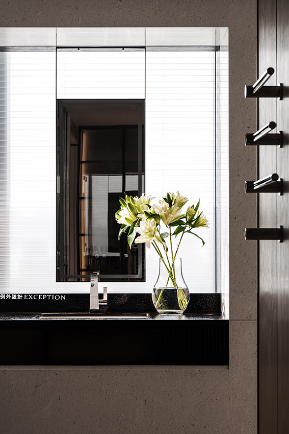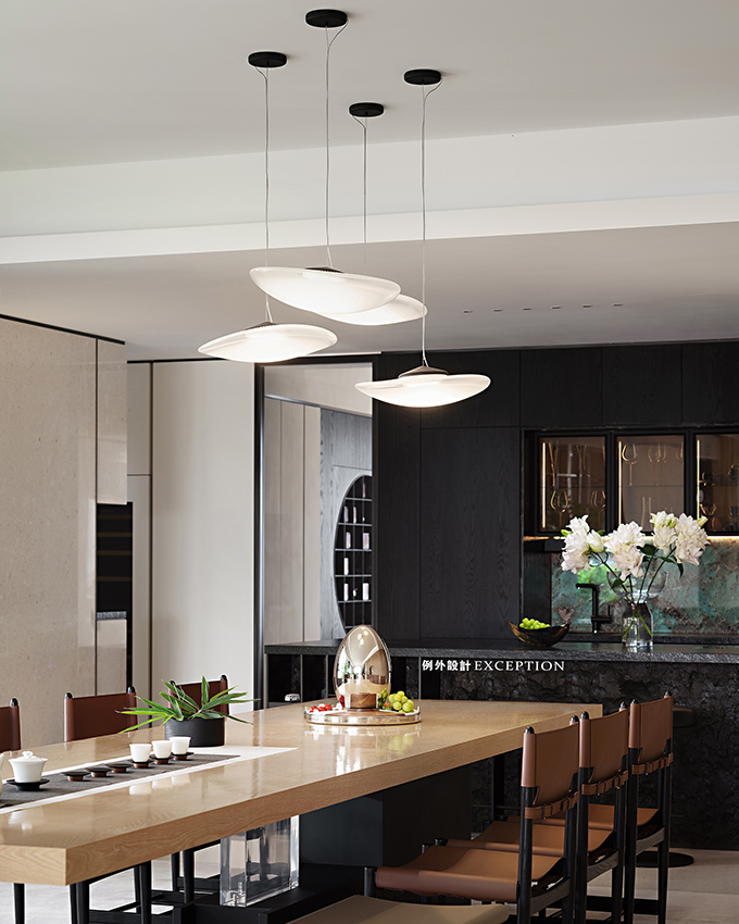 茶室則是女屋主的私享空間,融入傳統東方的元素,圓月型開放格大方地展示著她對茶文化的喜愛與品位??臻g整體氛圍雅致,茶臺借景窗臺,流露出一種通透閑適的平和感。梁實秋說:“人類的最高理想應該是人人能擁有閑暇?!狈怕畹哪_步,細細品味茶香,在繁忙都市里也是一種難得的精神享受。