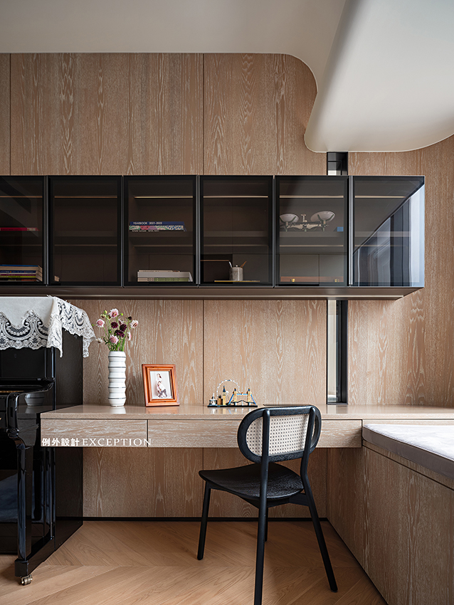 兒童娛樂室是孩子另一處培養熱愛的地方,悠揚的琴聲縹緲婉轉,l型轉角學習桌承載了孩子們奇思妙想的歡樂時刻,在自然的光影中學習與娛樂,父母陪伴孩子做手工或者閱讀,當孩子長大后回憶起來,都會是童年珍貴而難忘的幸福記憶。