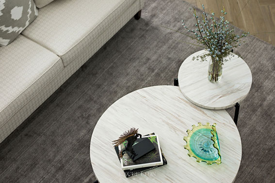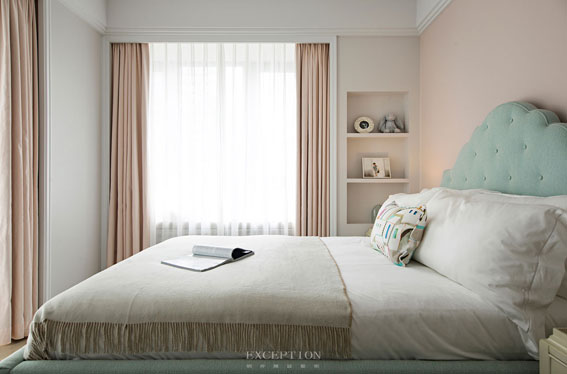 客廳有一種撲面而來(lái)的女性氣質(zhì),除了溫柔藍(lán)色帶來(lái)的第一視感,還有面料所蘊(yùn)含的神奇魔力:精細(xì)規(guī)則的紋路、面包般的外形與松軟觸感。