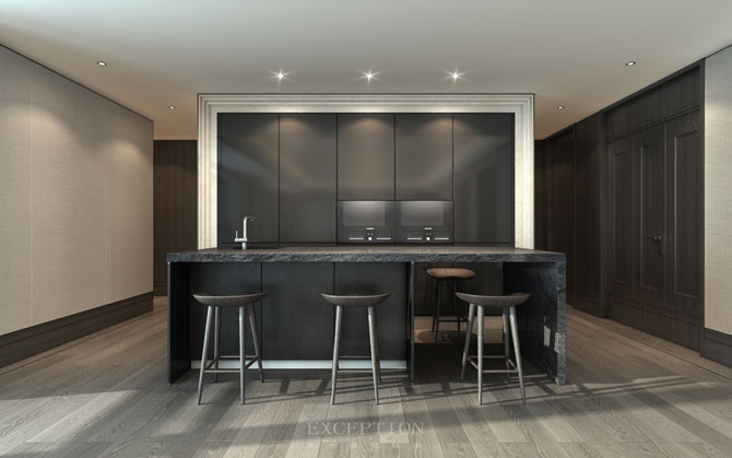 吧臺采用沉穩的黑色為主,日常小酌,暢快談心,整體空間藝術感濃厚,燈光灑下,似時光留駐,又添了幾分悠然。