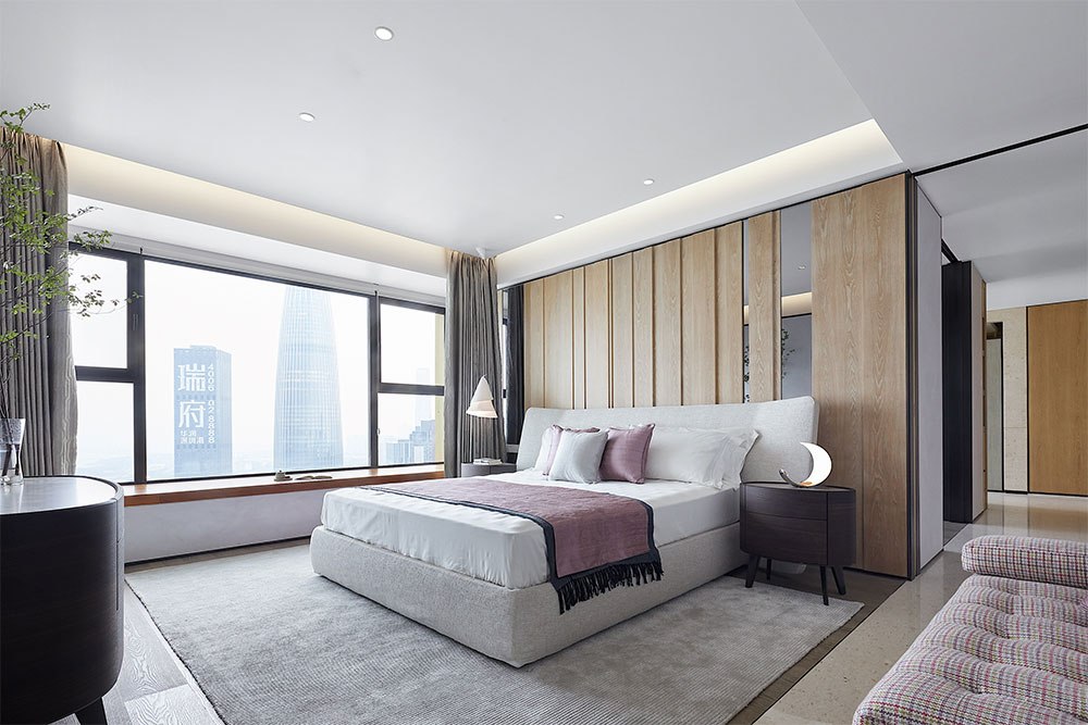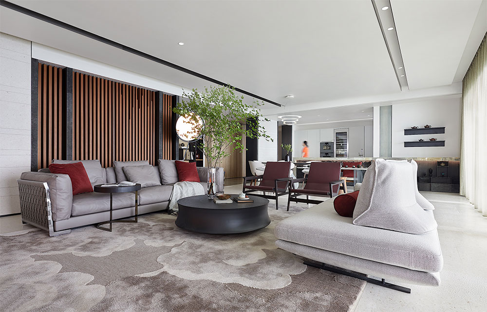在深圳華潤悅府這套私宅中,他帶領(lǐng)鴻藝源設(shè)計(jì),以簡為美,以質(zhì)為雅,將當(dāng)代藝涵與新中式美學(xué)進(jìn)行糅合,賦予空間感性與詩性的美,以積極的情緒引導(dǎo),著重打造居者的感官體驗(yàn)。