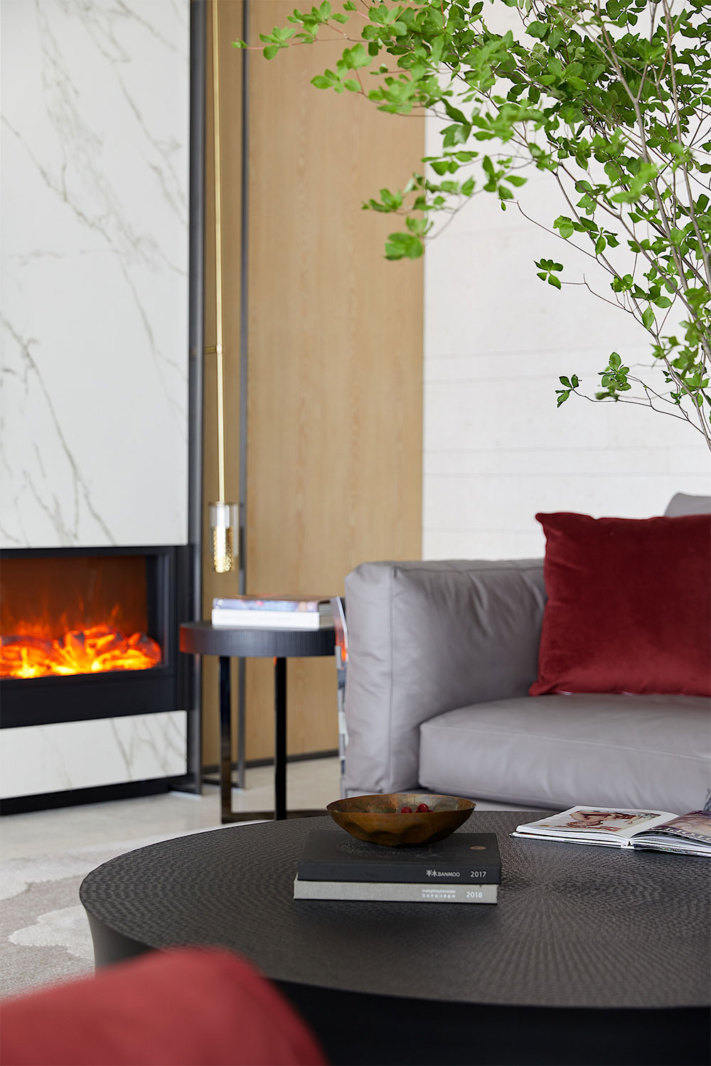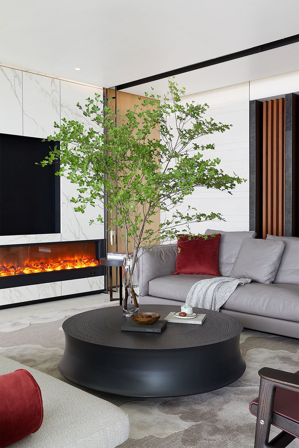 空間褪去浮華的裝飾,以素白與雅灰的色調(diào)統(tǒng)籌,濃郁的中式正統(tǒng)朱紅色揚(yáng)起節(jié)奏感,氣韻透著一絲古雅,卻不顯得陳舊厚重。國內(nèi)外高品質(zhì)家具部品的構(gòu)設(shè),營造一室端然格調(diào)、雅澹氛圍。藝術(shù)與生活的邊界在此彌散,空間的氣韻是靜雅且清閑的,賦予人的是日常起居的和諧與舒適之感。