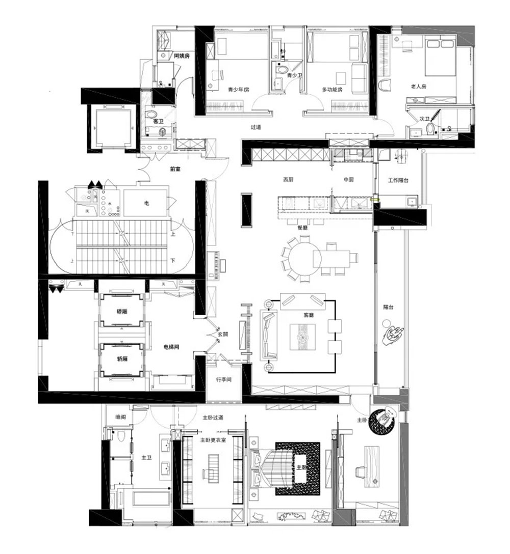在設(shè)計(jì)師鄭鴻的理解中,定制設(shè)計(jì),是做到對每一個(gè)家庭成員的關(guān)愛。在定制的私宅當(dāng)中,老人有適配自己的悠閑自主、舒適便捷的老年生活場景,青年人有自由輕松、個(gè)性獨(dú)特的生活態(tài)度,孩童有多彩多姿、童趣盈盈的成長環(huán)境。