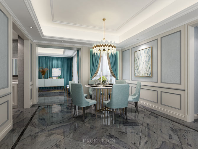 通過(guò)轉(zhuǎn)角墻面捫皮設(shè)計(jì),將客廳和餐廳的圍合感凸顯出來(lái),打造溫馨舒適的居家氛圍。墻面的灰鏡也很巧妙地增加了空間的開(kāi)闊感。