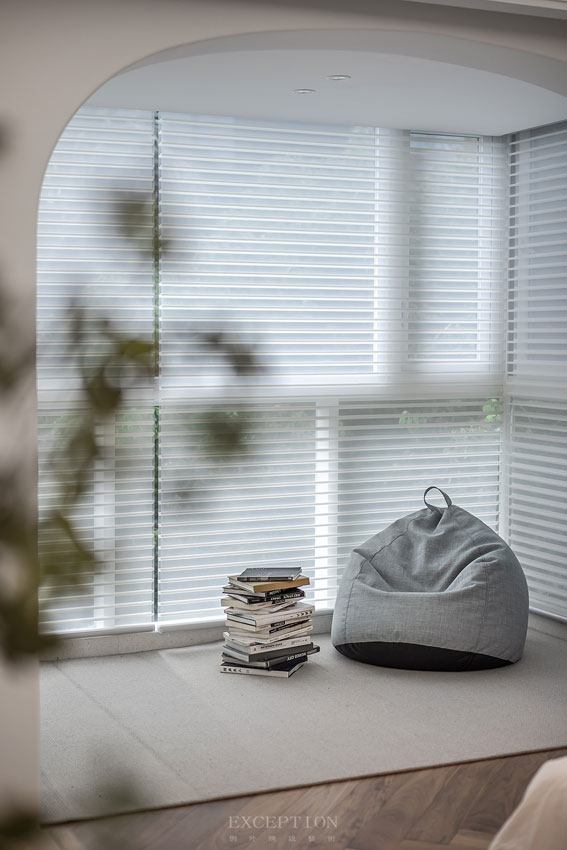 打開玻璃拱門,孩子可以從多功能的洞口鉆到客廳,也可以從客廳吊椅背后又回到多功能房。此時的家就是一個游樂園,無論是孩子之間,還是孩子與父母長輩之間一起互動,都能讓家里充滿歡聲笑語。