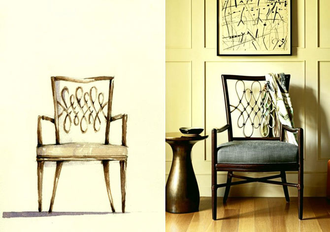 这款椅子的灵感来源于水彩,终成为baker家具里的一员。
