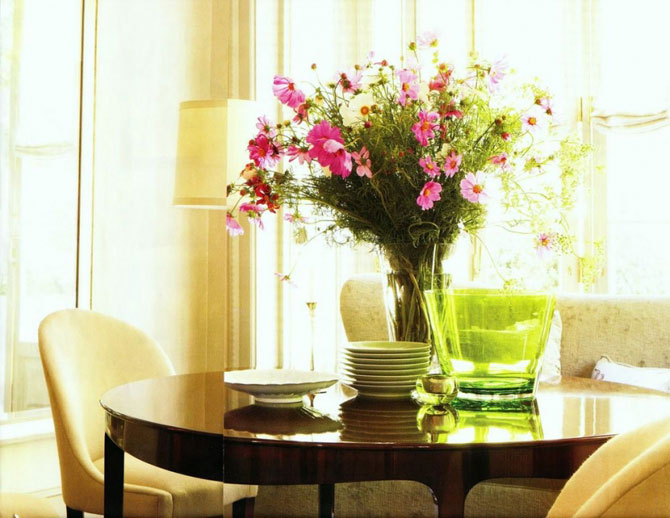 1、巧妙地利用一些轻柔的软装设计色调搭配,经常使用黄绿色到灰绿色这些绿色。其次则是紫红色,她能从自然界中获取灵感。