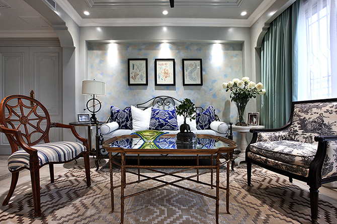 在設(shè)計(jì)中,我們盡量在合適的風(fēng)格背景下,把蔚藍(lán)色海岸與白色沙灘的純美組合融入軟裝中,進(jìn)而為居者帶來貼近自然的美妙感受。