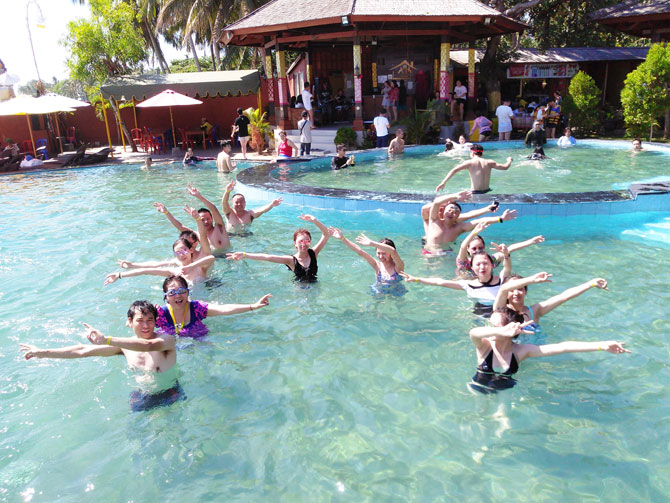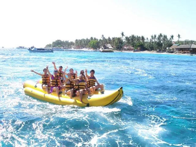 Tips:除了巴厘岛,稍远一点的贝尼达岛其实也是个不错的选择。这里的水上项目也很丰富,团队旅游的话一定要注意讲价,套票也很实惠,比南湾便宜很多!