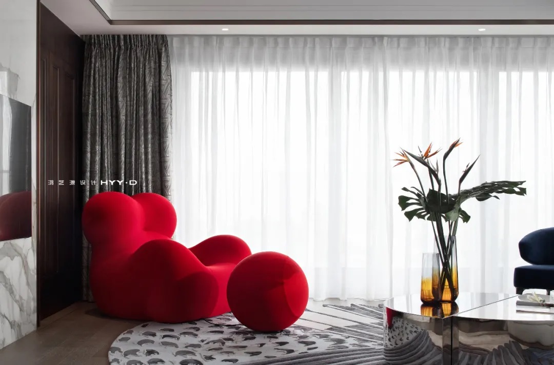 一個待得住的家,每一個角落都有著讓人能夠放松的理由。媽媽的懷抱以最柔軟的姿態散發著母親般的溫暖與安全感,紅色熱情,如同生活的熱鬧斑斕,那是一種可感知的暖意。藍色單椅優雅紳士,紅藍撞色融入時尚的審美趣味,家人小憩、閱讀,靜靜陪伴也是一種無聲的默契。