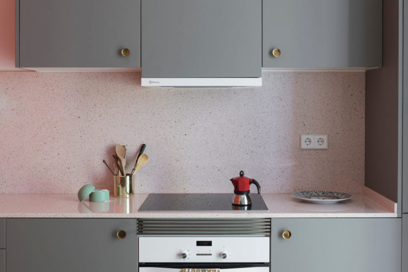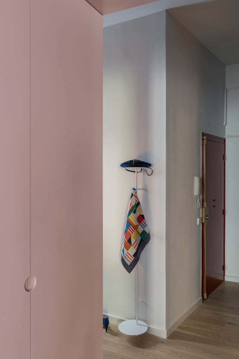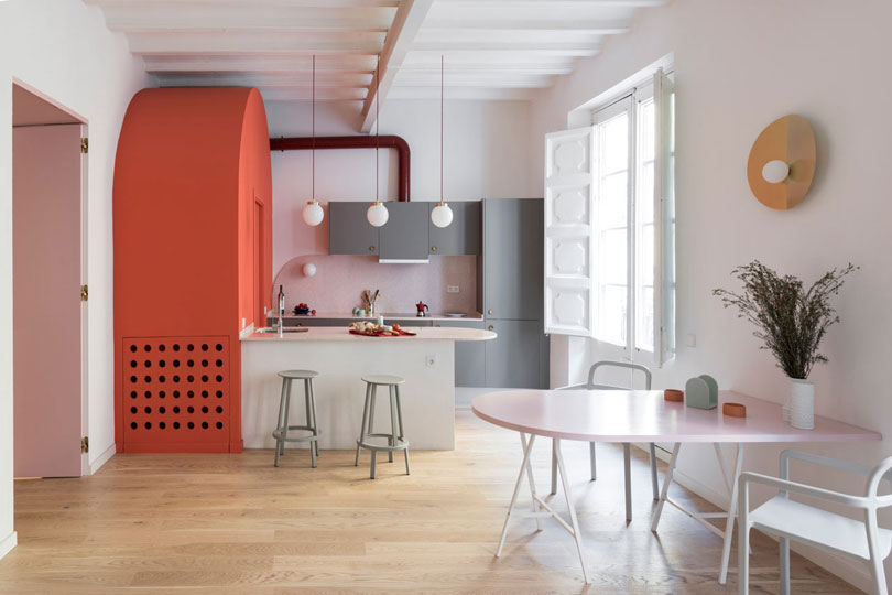 淡粉色和橘紅色的搭配,柔美而不失活力,就像把陽光種在家里。白色為基底,粉與灰進行搭配,整個空間是輕盈靈活的。
